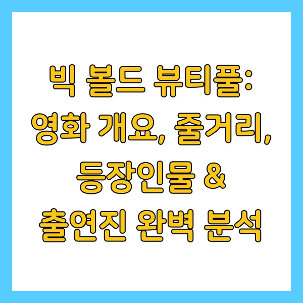 '빅 볼드 뷰티풀'은 2025년에 개봉한 영화로, 외모, 성격, 꿈, 그리고 사랑까지, 세상 모든 아름다움을 포용하는 이야기를 담고 있어요. 외모 지상주의에 갇힌 우리에게 진정한 아름다움이 무엇인지 질문을 던지는 영화라고 할 수 있죠. 겉으로 보이는 모습이 전부가 아니라는 것 , 우리 내면의 빛이 얼마나 소중한지를 깨닫게 해주는 영화예요.