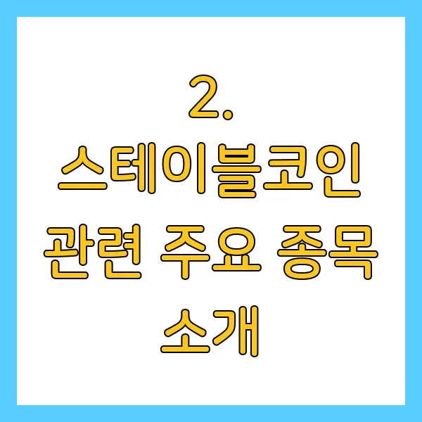 스테이블코인 시장의 성장은 금융 및 기술 산업의 관련주에 큰 영향을 미치고 있습니다. 다음은 스테이블코인과 직접적 혹은 간접적으로 연관된 주요 종목들입니다.
