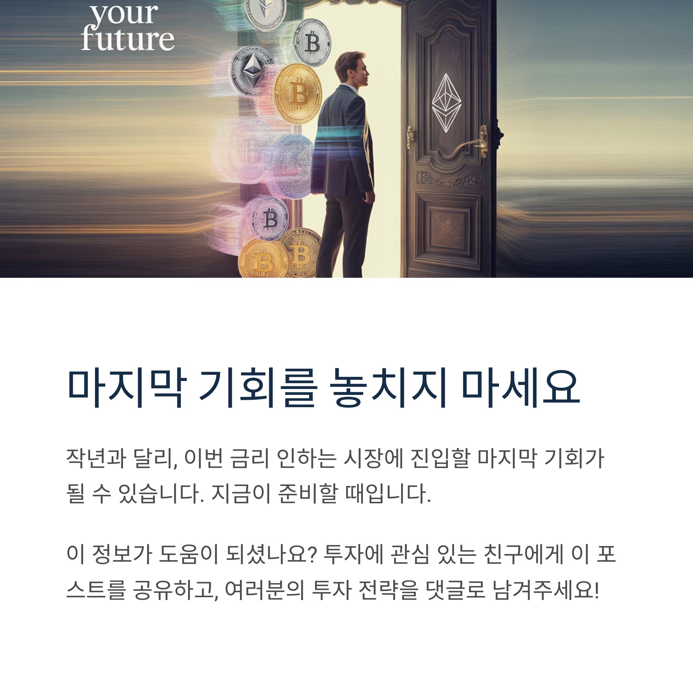 작년 말과는 달리, 이번 금리 인하는 지속 가능한 구조적 변화가 될 수 있습니다. 시장에 진입할 마지막 기회가 될 수도 있는 시기이니, 꼭 준비하시길 바랍니다.